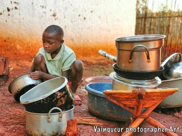 Her name is Zainabo, she is a smart girl and also brave according to her mother. What is surprising is that Zainabo is angry because her mother tells her that she has to clean all the pots before going for a walk with her friends. As she thinks herself clever she wanted to hide some saucepan to clean it later. Unfortunately, her little sister Aziza was watchful and alerted her mother. Zainabo explains to me that she will clean up in her due time because she is wanting to participate in their children's game Kunoka. Her mother obliges her because if she leaves without cleaning the pots, it will be impossible for her to do it later because the water is not available all the time and she has to prepare the food in clean pots. By saying it to his daughter: "Okey, you will play your game after cleaning but you refuse cleaning dishes. I'm telling you, you'll eat your game at night because you like game more than cleaning our casserole, pot and pan. Do the things which you are important to you." Zainabo has finally agreed to clean all the dishes before going to play their Kunoka childish games.